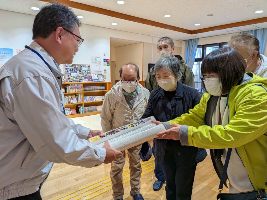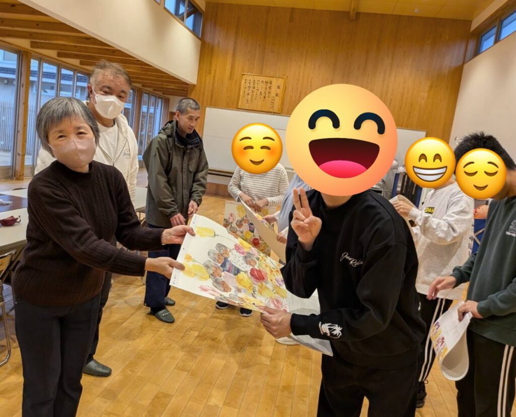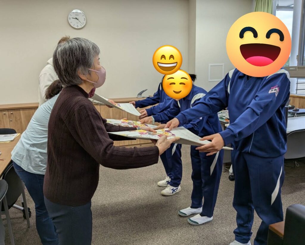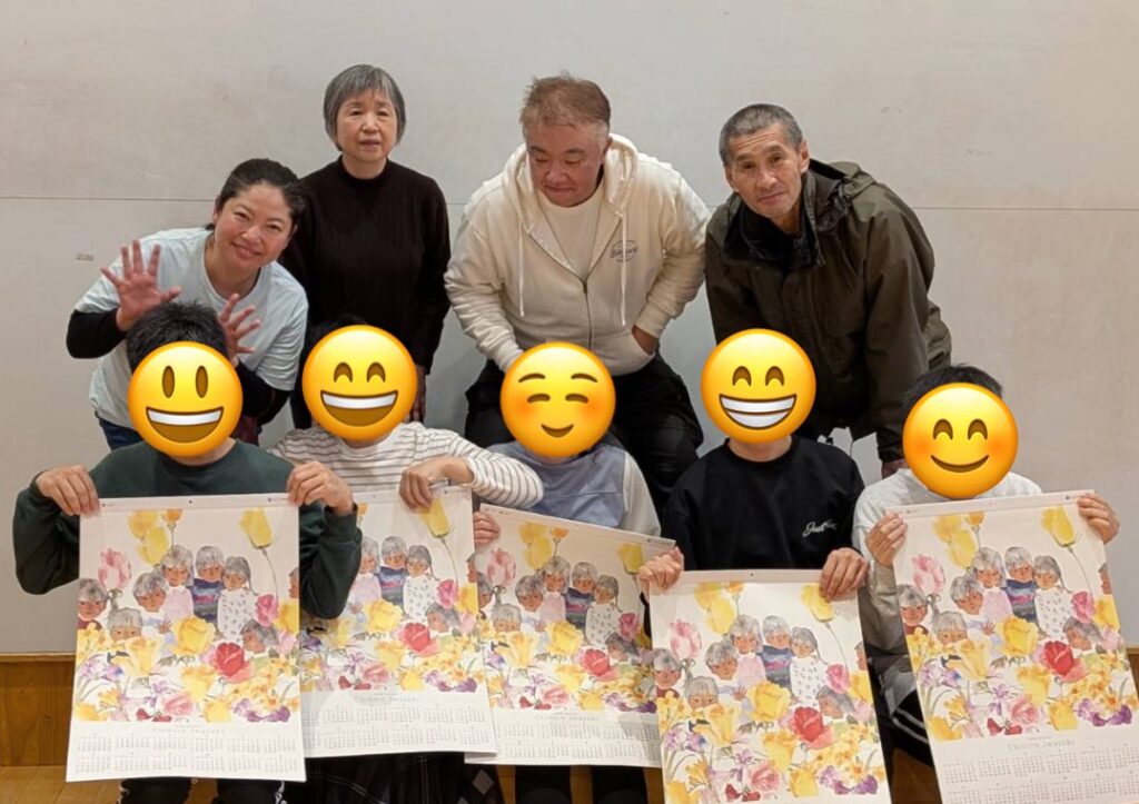 利用者代表の5名が贈呈式に来てくれました。カレンダーを持って喜んで廊下を歩いてくれたり、利用者のKさんはずっと私たちを気にかけて送り迎えをしてくれたりと、とても歓迎ムードで嬉しかったです。