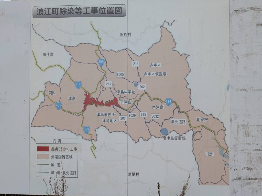 福島県原水協の石堂祐子事務局長や福島県楢葉町の宝鏡寺にある「ヒロシマ・ナガサキ・ビキニ・フクシマ伝言館」の丹治杉江事務局長も一緒に、馬場績(いさお)元浪江町議の案内で浪江町津島地区の避難解除された場所を視察しました。