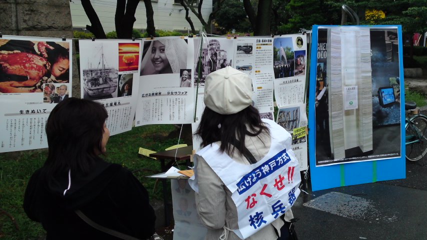 【兵庫】尼崎原水協が6・9行動 お寺訪問し署名訴えも 05 署名 X Facebook はてブ LINE コピー 2012.05.072012.05.08 尼崎原水協は5月6日、阪神尼崎駅にて、6・9行動を6名の参加で行いました。 「核兵器もだが、戦争はあかん」などの声もあり、雨あがりのなか、46筆の署名が集まりました。 15枚の原爆写真の展示をし、たくさんの人がじっくり見ていきました。 昼食後、4人で近くにある寺町のお寺を約10軒訪問し、署名を訴えました。快く署名に応じてくれたり、忙しいので後日取りに来てくれと預かってくれました。 (尼崎原水協 植木一夫)