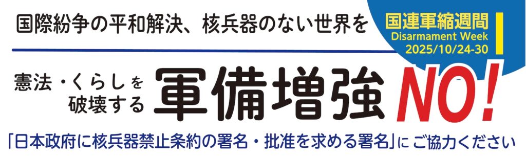 この会議で「軍縮週間」のとりくみが宣言されました。国連創設の日である10月24日から1週間、日本原水協は毎年とりくんでいます。