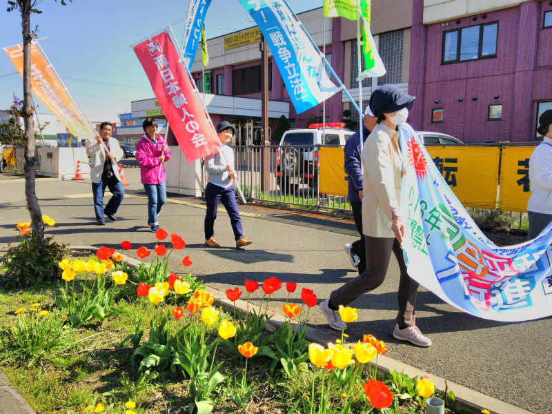 根室市内を平和大行進中は、なかなか風が強かったです。