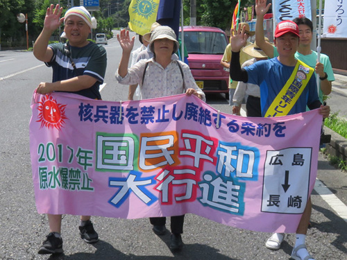 竹田昭彦さんと嶋田紀子さんと一緒に、広島から長崎まで歩いています。 2017年の平和大行進をはじめて、すでに数日が経ちました。