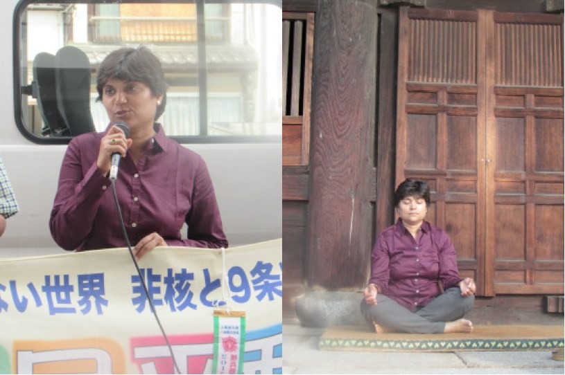 天候は蒸し暑いですが、行進参加者はみんな世界を変えようと変わらぬエネルギーと勇気で行進しています。今日はすばらしい朝でした。私とソフィアは一緒に朝6時30分に尾道市にある三重の塔と100年以上続いているお寺を訪ねました。190段の階段を上って三重の塔のてっぺんに着きました。そこから見る尾道市はすばらしい眺めでした。その場所はとても涼しくて神聖な雰囲気に満ちていました。私は10分間瞑想しました。この場所に案内してくれた長谷川こういちさんに感謝です。
